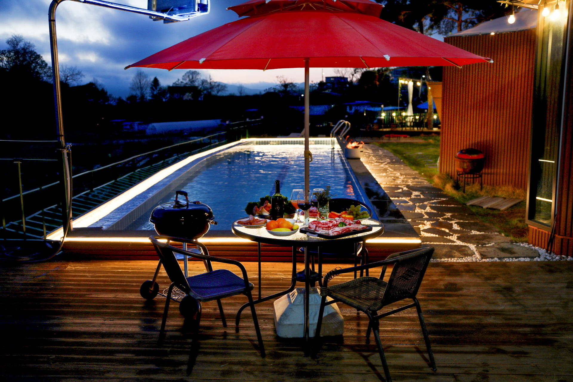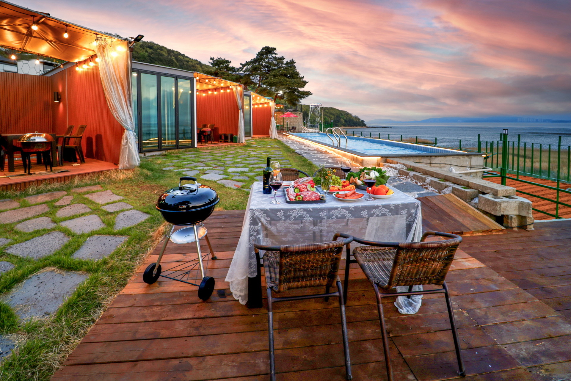 낙조의 명소에서 즐기는 바비큐